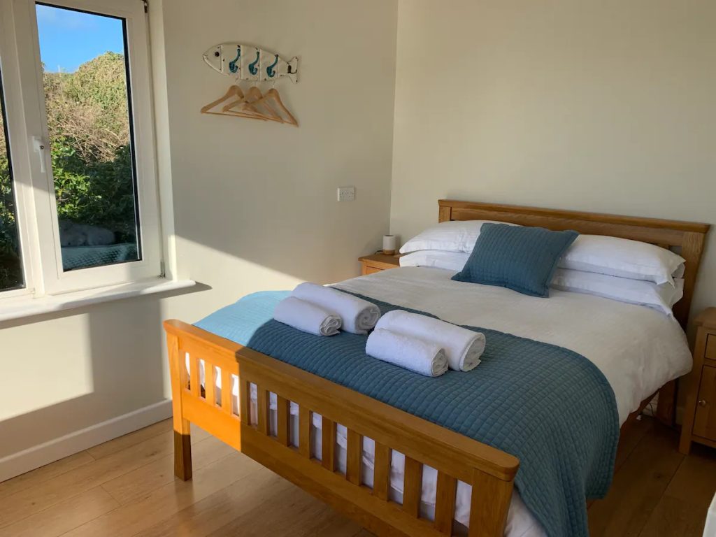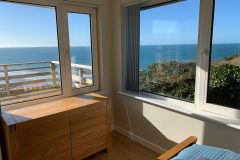 Kingsize bed with views overlooking Perranuthnoe beach. Access to the lookout conservatory.